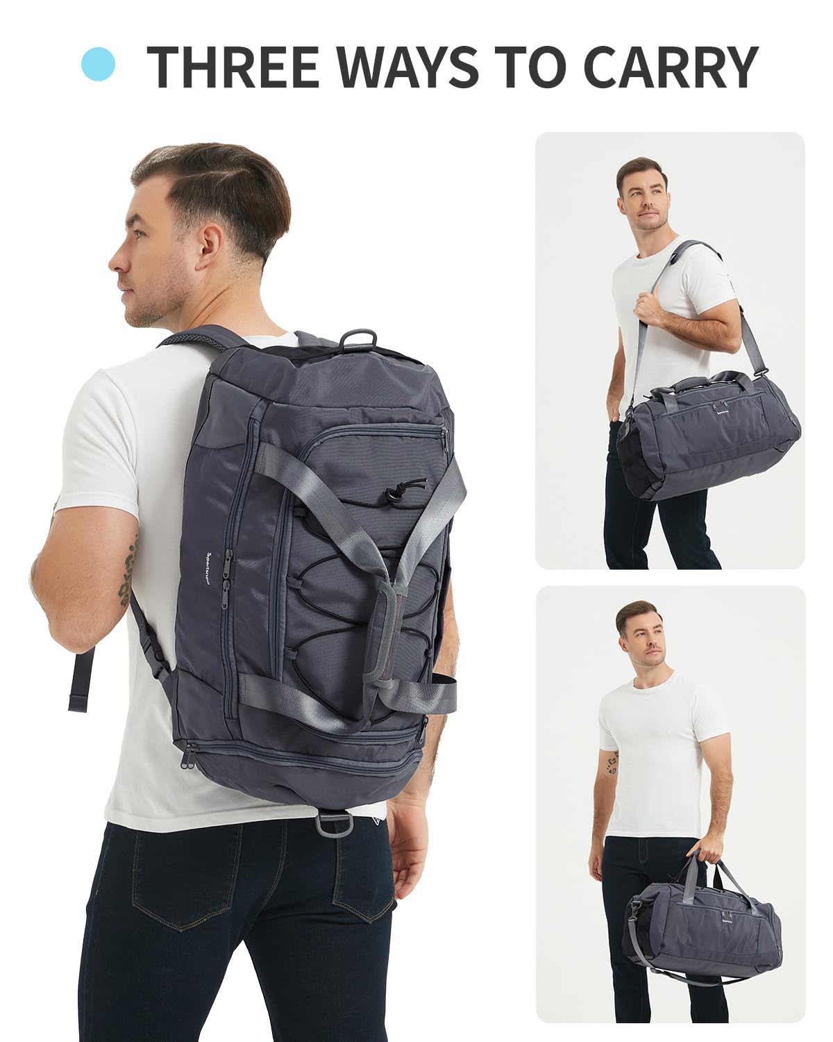 - 【Three-in-One Design】Switch up your style with ease! This versatile travel bags for men can be carried as a duffel, worn as a backpack, or slung over your shoulder. The hidden adjustable strap ensures a seamless transition, blending convenience with a sleek look.