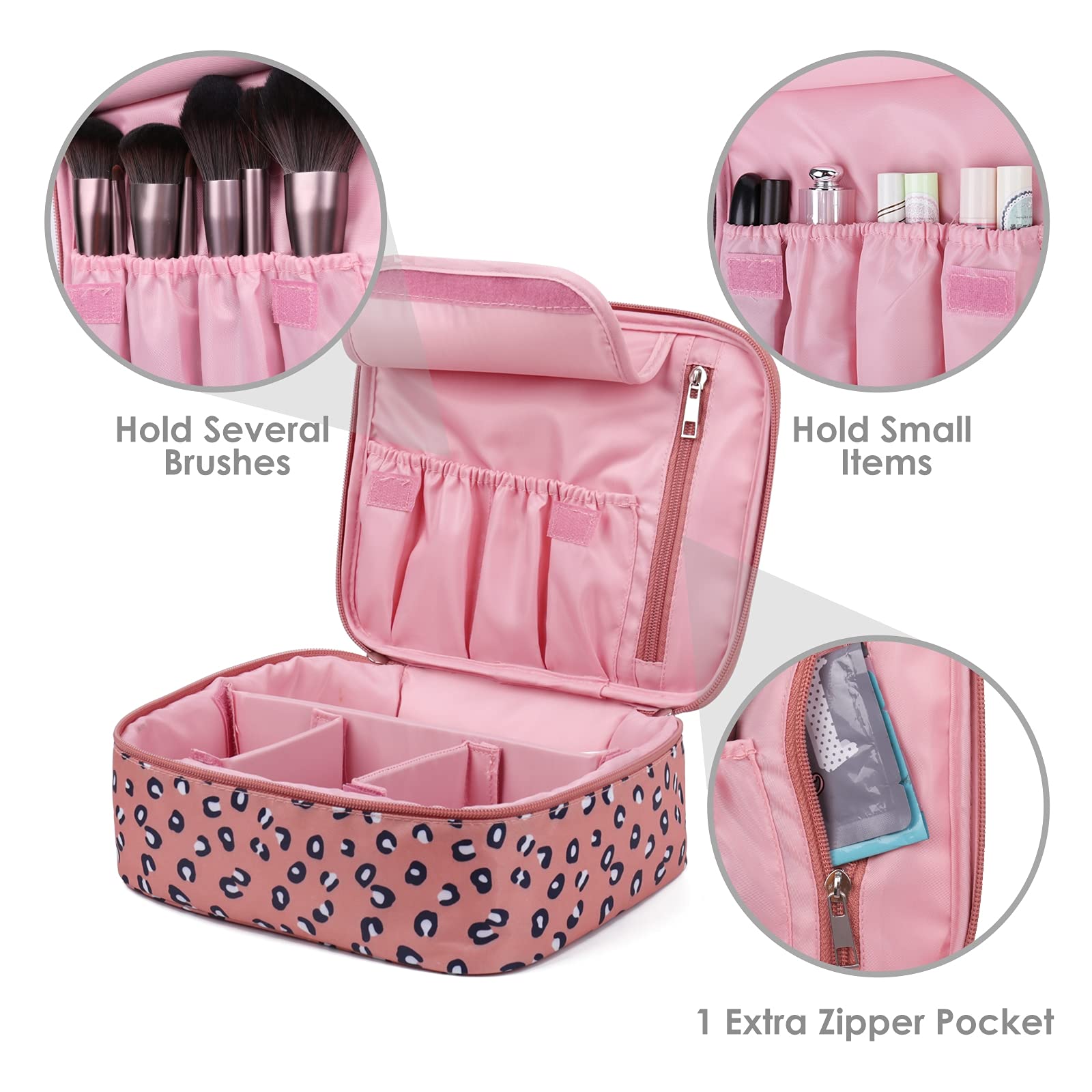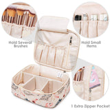 • 4 large brushes pouches, 1 zipper pockets, 1 large compartment, 3 smaller compartments.