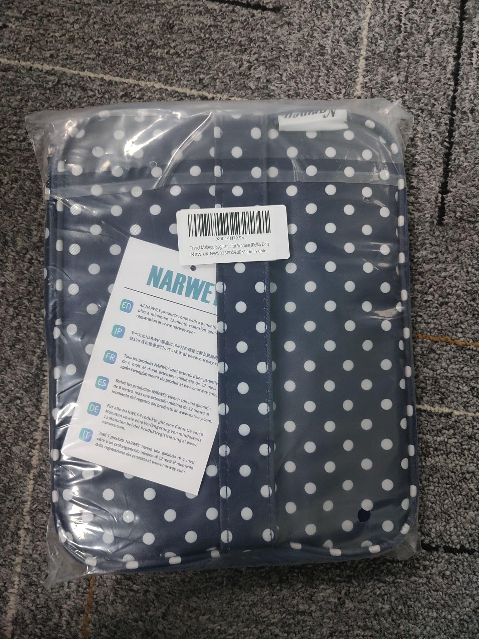 This Narwey Travel Large Cosmetic Case Makeup Bag is great for on-the-go organization. It features a large capacity design with multiple compartments and is made of water-resistant material to ensure your makeup is safe during travel. Perfect for keeping your cosmetics organized and secure.